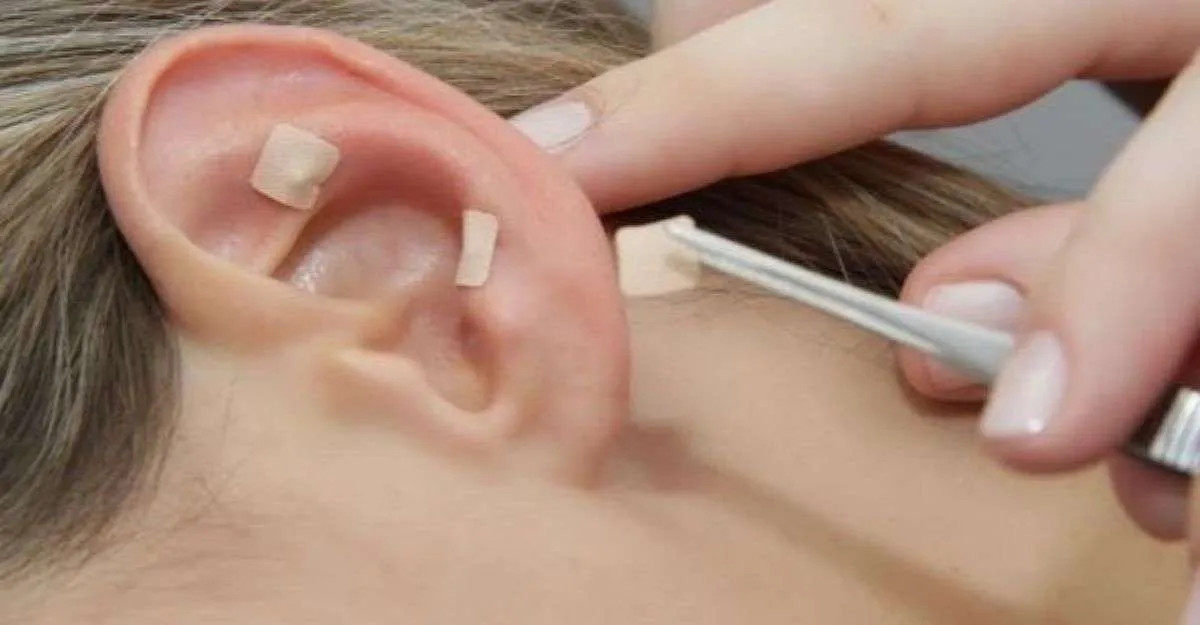 Estimulación de distintos puntos del pabellón auricular usando semillas de vaccaria.